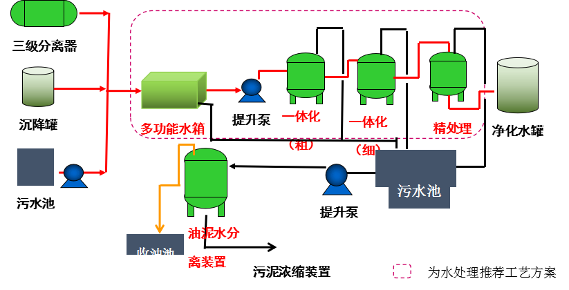 油泥水+一體化兩級處理流程